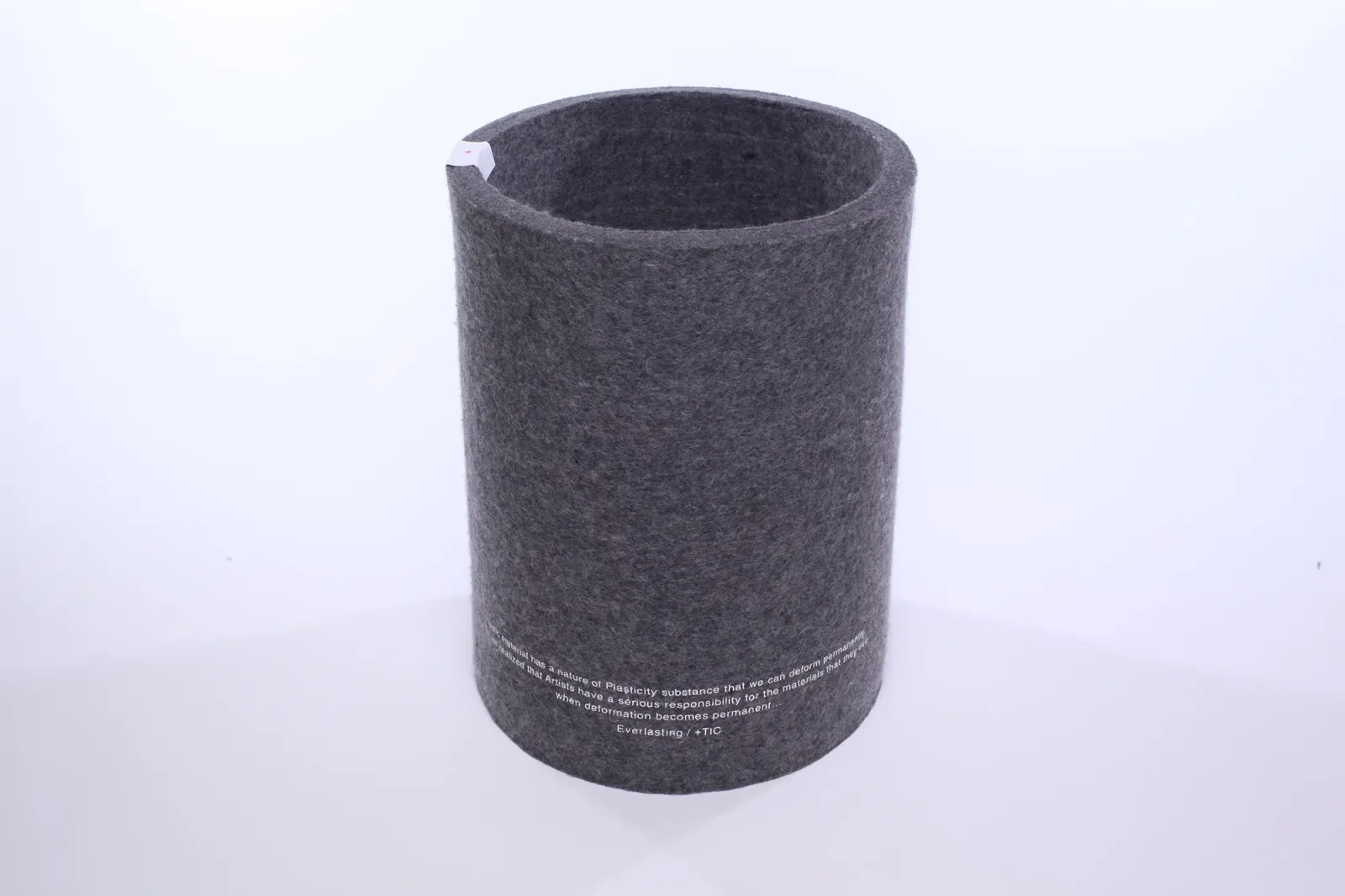 A 15mm-thick hard felt was used for a self-supporting “waste bin,” taking advantage of its rigid texture. A 5mm-thick soft felt was processed into a “laptop case” designed to protect a notebook computer.